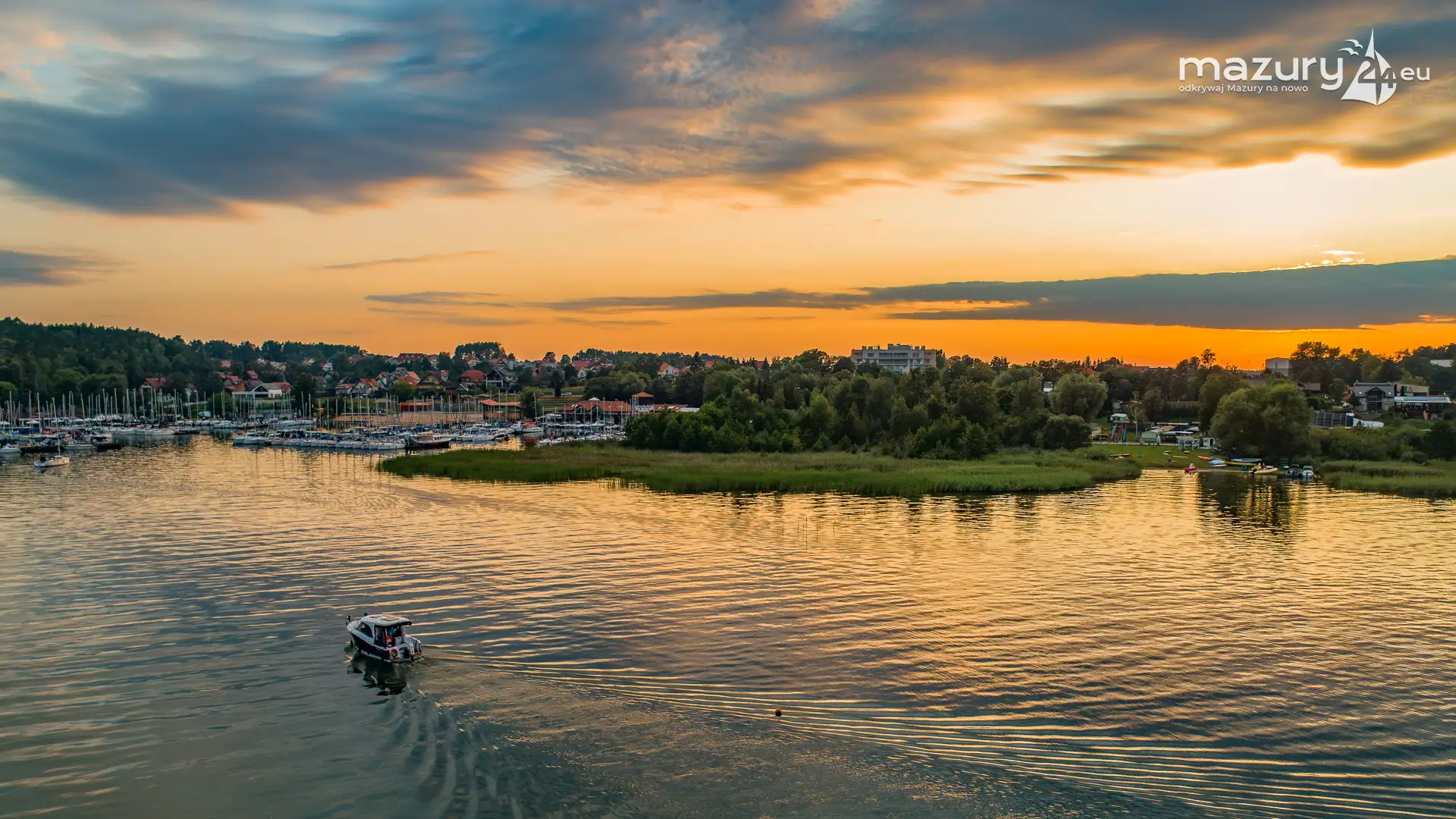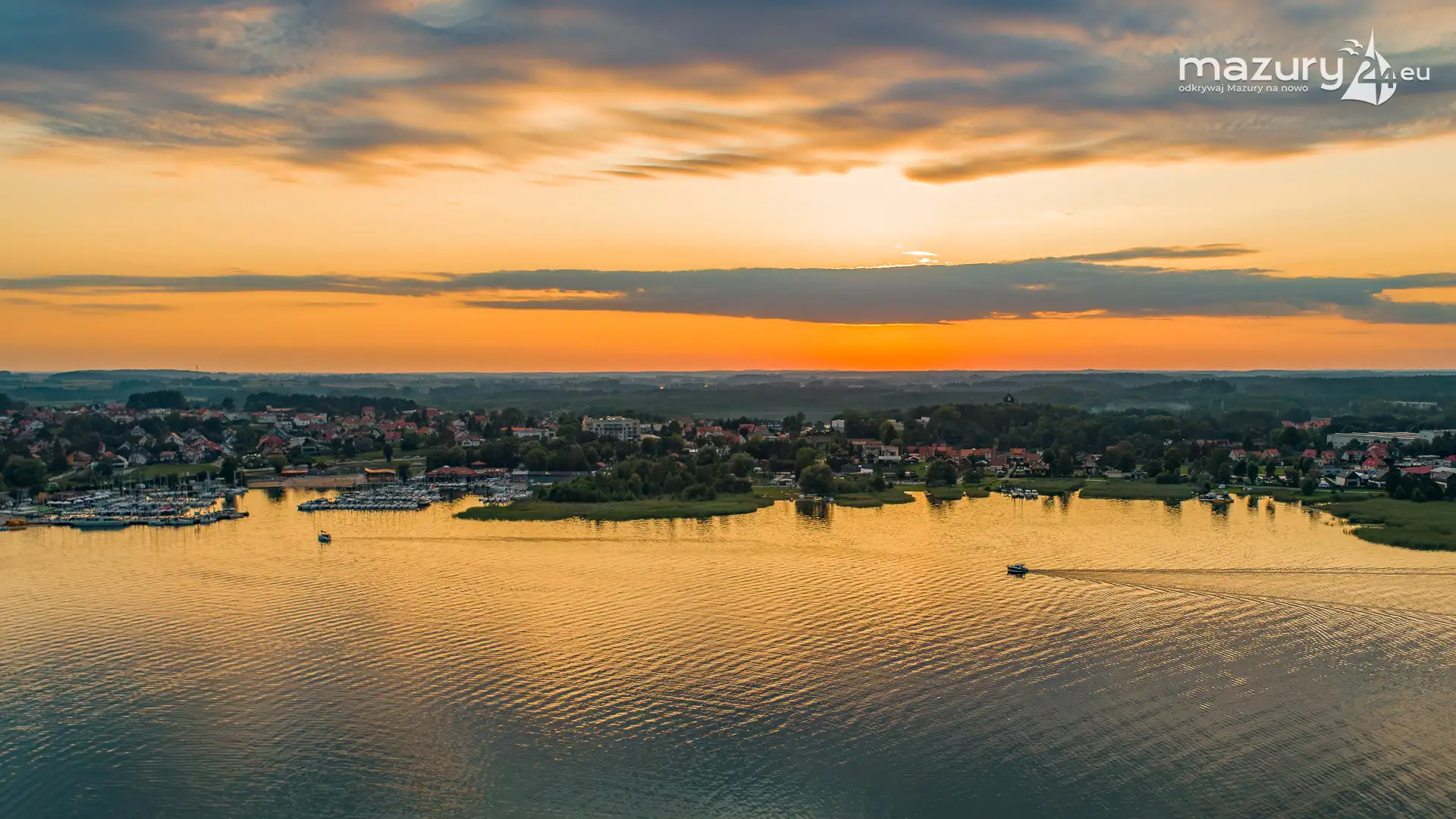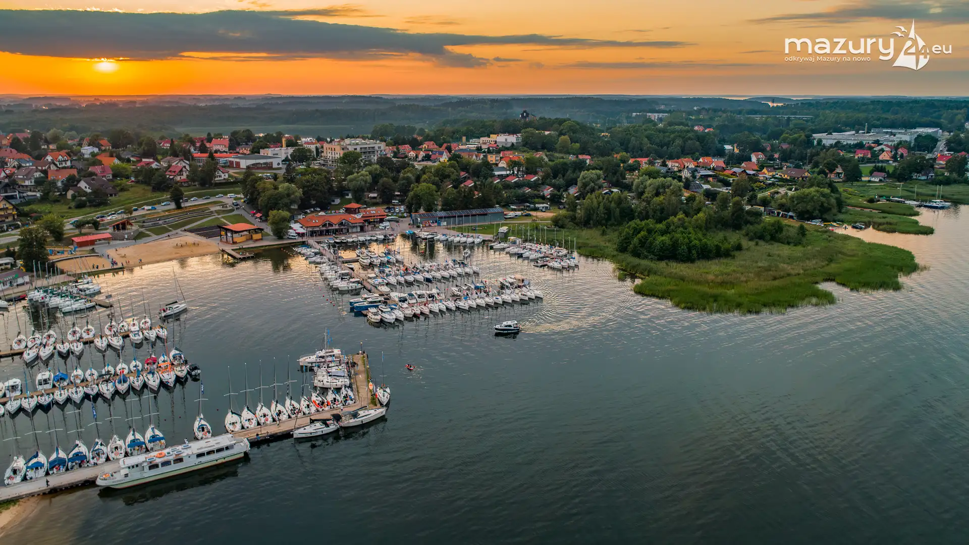 Aby pokazać Wilkasy i Niegocin (zachodni brzeg) o zachodzie słońca, trzeba wzbić się do góry. Kilka dni temu udało nam się polatać i znaleźć kolory zachodu w okolicach portów w Wilkasach. Tej perspektywy nie znacie z poziomu brzegu i pokładu jachtów :)